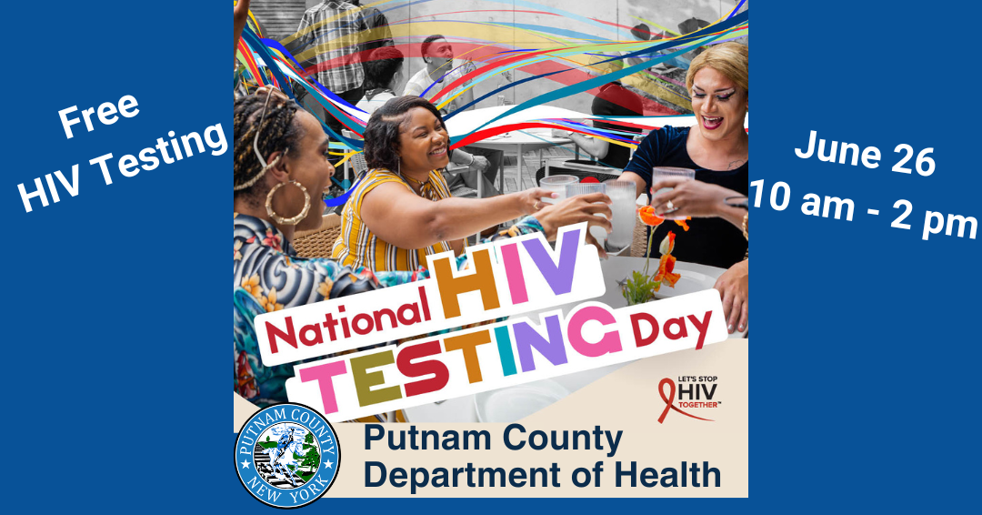 The easiest way to know your HIV status is to get tested. The Putnam County Department of Health is offering free HIV testing for New York State residents on Wednesday, June 26 from 10 am to 2 pm at the health department, located at 1 Geneva Road in Brewster.