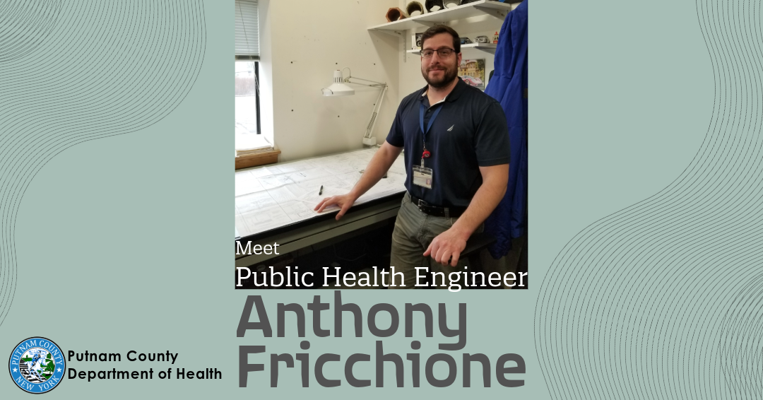 Do you know what a public health engineer does? In Putnam County, the Public Health Engineers work to protect the environment from pollutants that can harm people's health. Septic systems and individual and community water supplies installed in Putnam County are all reviewed and approved by the engineers at the health department. Ensuring these systems are built to function properly is one way that Public Health Engineer Anthony Fricchione helps to protect the environment in Putnam County. Continue reading to learn more about Anthony.