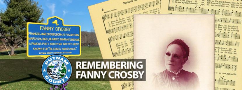 This year marks the 200th anniversary of the birth of Fanny Crosby, blind poet, hymn writer and Putnam County, New York native. Born in 1820 on Foggintown Road in Southeast, Fanny Crosby, blinded in infancy, became a famous poet and one of the most prolific hymnists in history, best known for “Blessed Assurance”. Fanny Crosby wrote more than 8,000 hymns, and her legacy lives on in Hymnals throughout the world. In 2020, the Putnam County Historian’s Office sponsored a historic marker, located at the corner of Farm to Market Road and Foggintown Road in Southeast, to commemorate Fanny Crosby’s life and times. In lieu of an in-person unveiling, due to the ongoing pandemic, the Historian’s Office presents “Remembering Fanny Crosby,” a virtual marker unveiling with contributions from Rev. Martha Vink of First United Methodist Church in Brewster and the Drew United Methodist Church in Carmel, the Southeast Museum, and Carol Bailey and Denise Bassett of Landmark Preservation Society of Southeast.