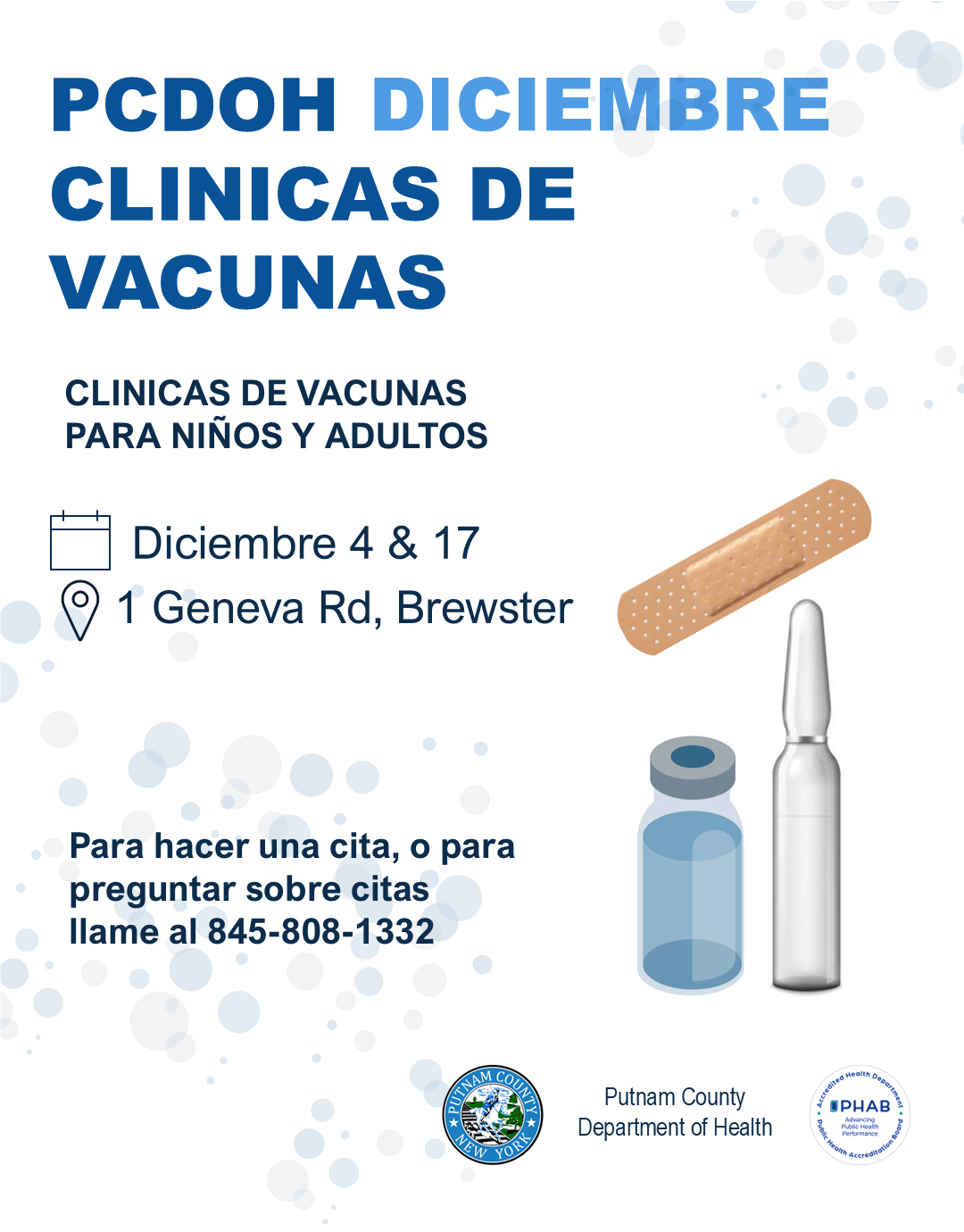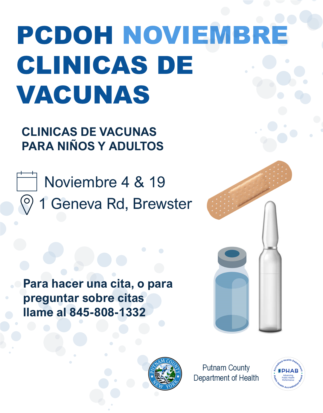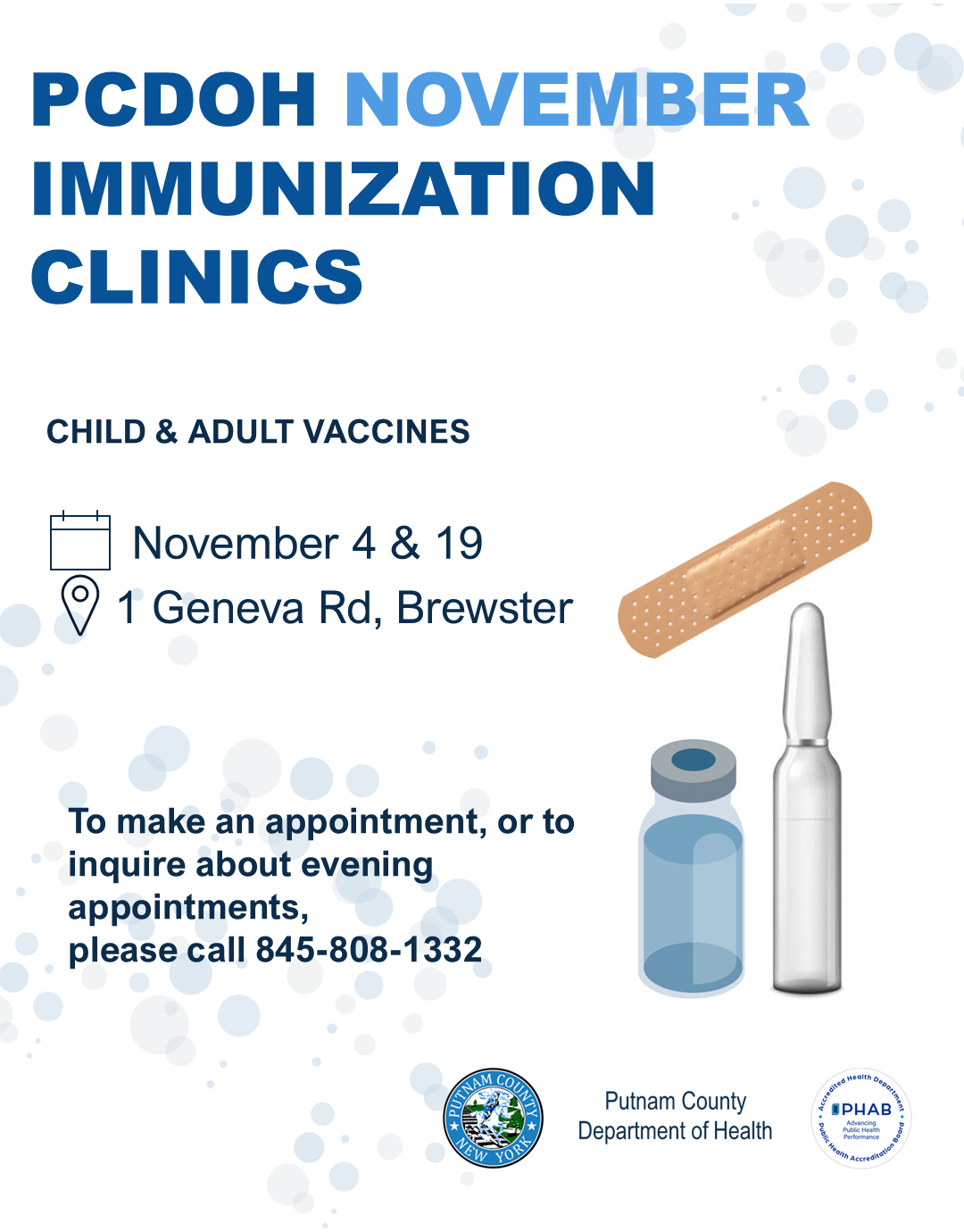 The health department is hosting three seasonal public influenza vaccine clinics. For dates and to register visit: putnamcountyny.gov/fluclinic