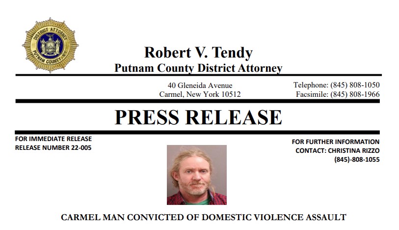 CARMEL, NEW YORK – October 21, 2022 – District Attorney Robert Tendy announced today that Carmel resident Jeff Hanlon was convicted at trial for assaulting his wife with a crowbar on December 17, 2020.
