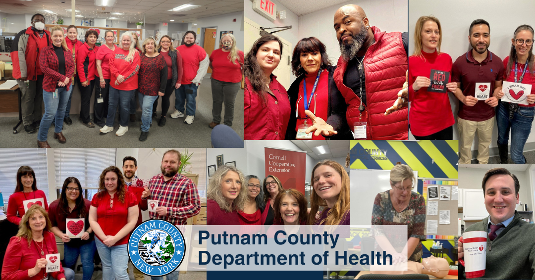 BREWSTER, NY—This year, as every year, February is the time for Heart Health Month. During the first week, Putnam County employees along with those from other organizations joined together to kick off activities with the American Heart Association’s “Go Red Day” commemorated on February 2.  This year also, for the first time, county employees also had a chance to learn how to recognize a cardiac emergency from one of their own expert trainers at Putnam’s Bureau of Emergency Services. Three lunchtime learning events were scheduled throughout the month to teach life-saving skills to manage until EMS arrives.