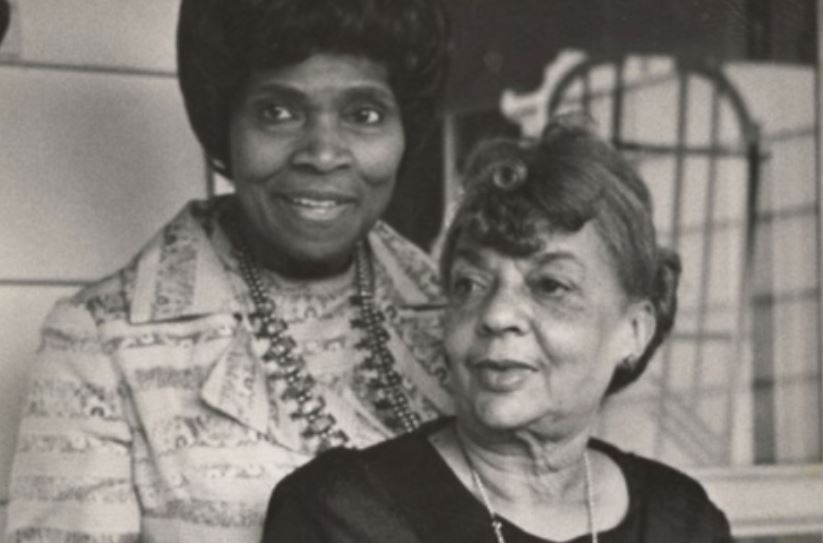 Regina Andrews (seated) with librarian Edna Law.