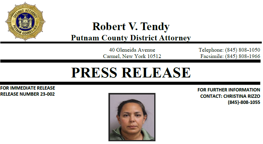 CARMEL, NEW YORK – December 4, 2023 – Putnam County District Attorney Robert V. Tendy announced today that on December 1, 2023, Elisa Sanchez, a Dutchess County resident, was convicted after a jury trial of Grand Larceny in the Third Degree and Criminal Possession of Stolen Property in the Third Degree.