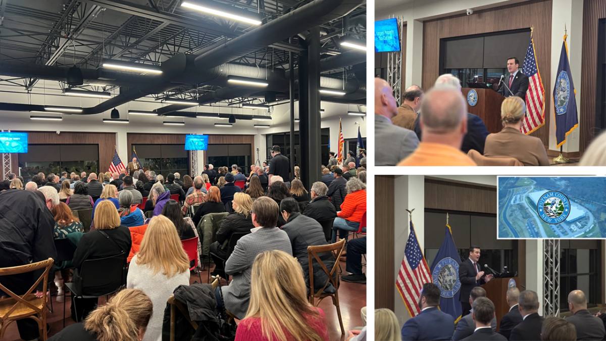 CARMEL, NY – Standing before the largest crowd in county history for a State of the County speech, Putnam County Executive Kevin Byrne delivered his 2025 State of the County presentation on Monday, March 3, at the Ace Endico headquarters in Brewster. Nearly 230 attendees gathered in person, with hundreds more watching the event online. The address highlighted the County’s commitment to low taxes and responsible fiscal management, youth programming, infrastructure improvements, and innovative public services.