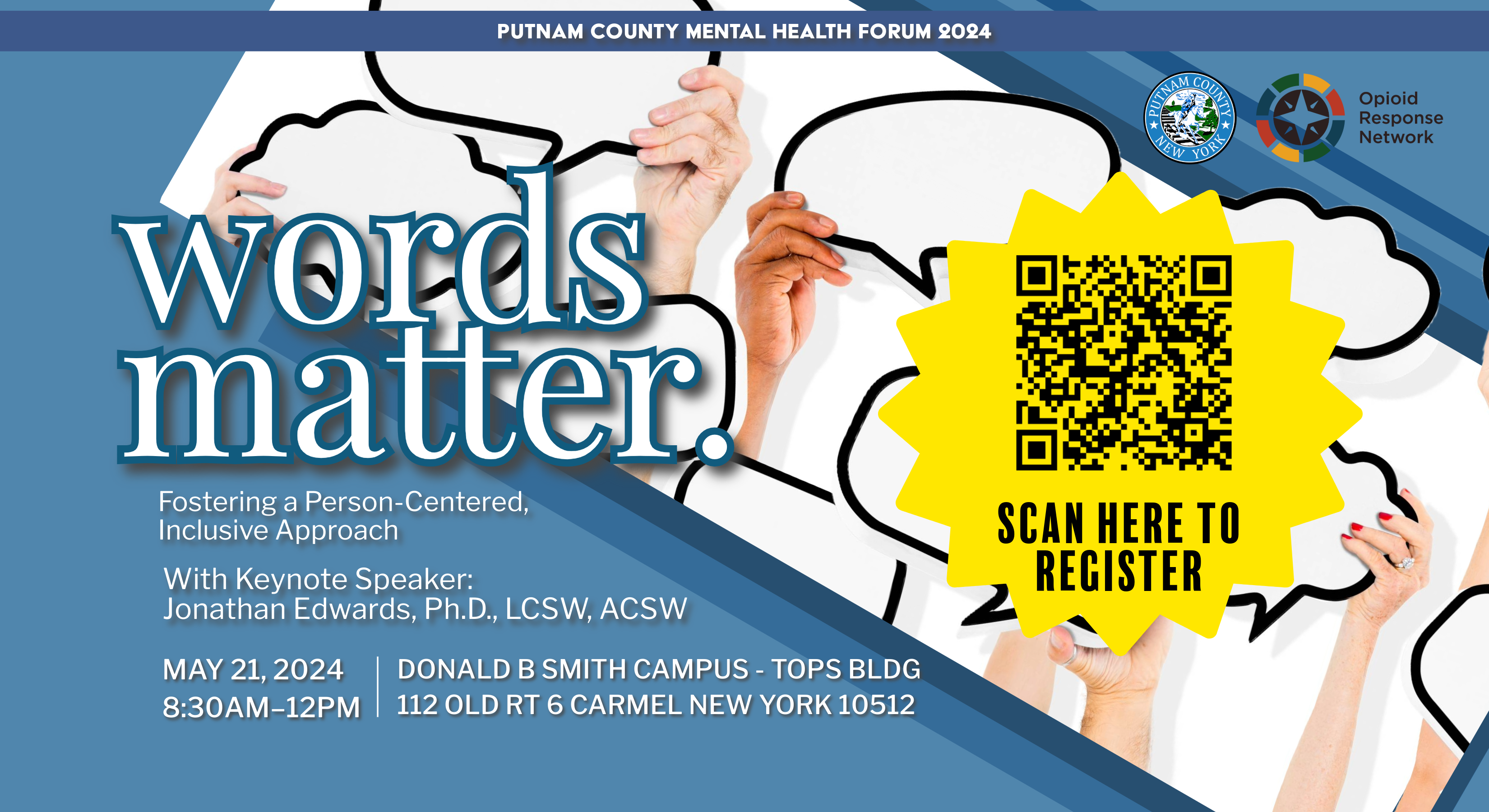 The focus on person-centered, strengths- based services is carried into the Putnam County Mental Health Forum to be hosted this month. The title of the forum on May 21st is “Words Matter: Fostering a Person-Centered, Inclusive Approach. The forum is open to all, and registration is required: https://form.jotform.com/241094989511161.