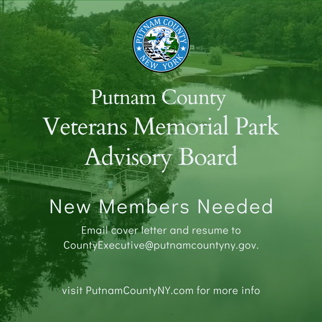 CARMEL, NY – Earlier this week, Putnam County began accepting applications from qualified individuals to serve on the Putnam County Veterans Memorial Park Advisory Board. Interested applicants should submit a brief cover letter and resume to the Office of the Putnam County Executive via email to